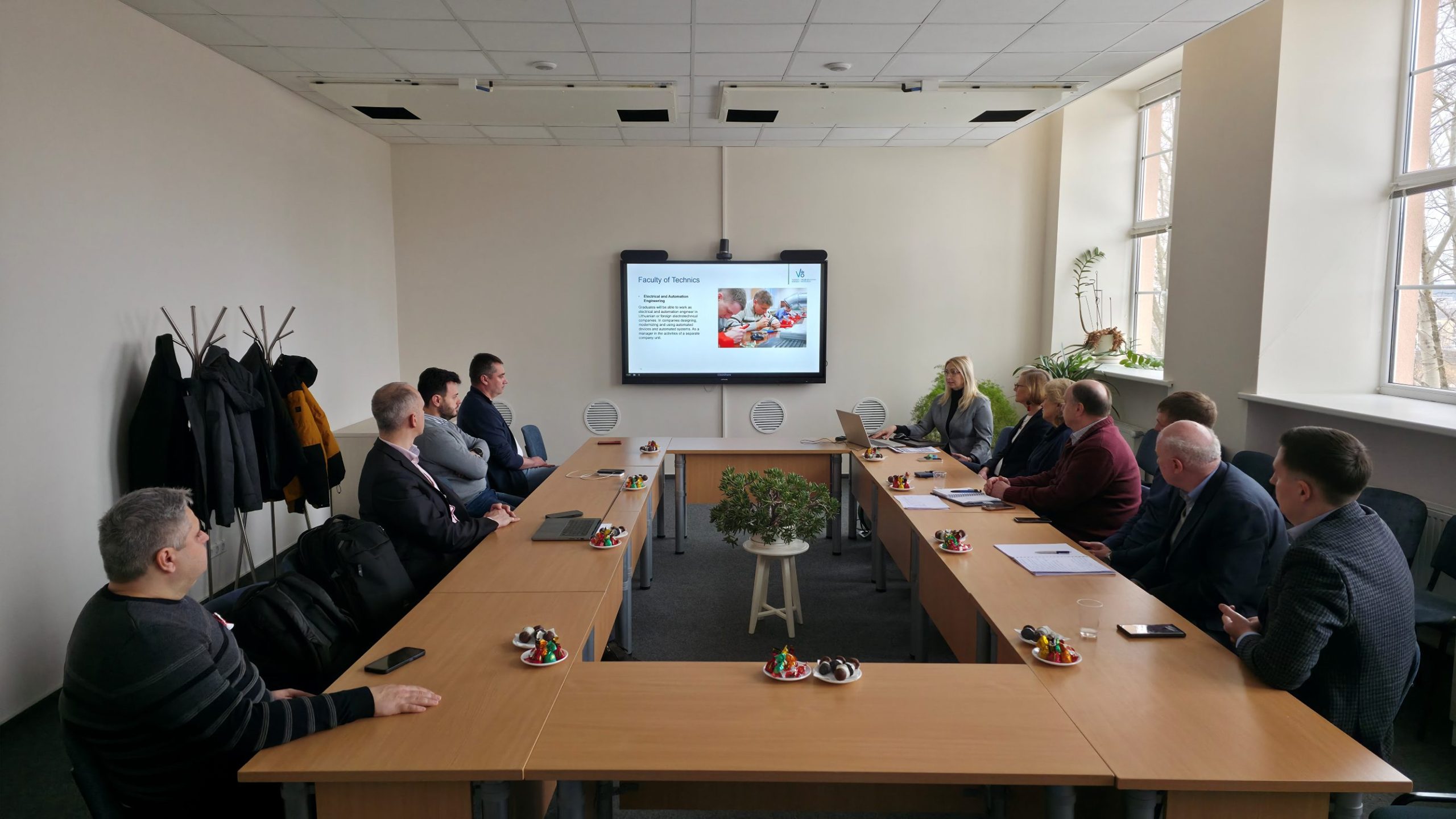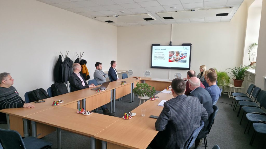 Svečiai susitiko su Technikos fakulteto administracija ir akademiniu personalu. Fakulteto tarptautinių ryšių koordinatorė Jolanta Pileckienė pristatė vykdomas studijų programas bei tarptautinio bendradarbiavimo galimybes.
