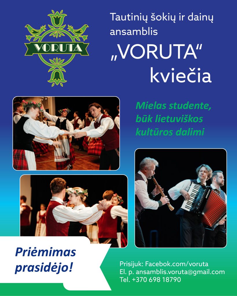 Jei mylite tautinį meną, norite prasmingai praleisti laisvalaikį šokdami, muzikuodami ar dainuodami – kviečiame prisijungti prie šokių ir dainų ansamblio „Voruta“. Čia atrasite naujų draugų, bendraminčių ir tapsite draugiškos, smagios bendruomenės dalimi! 🥳