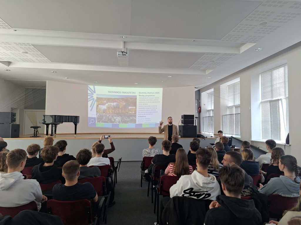 Renginį pradėjo Technikos fakulteto dekanė doc. dr. Gražina Strazdienė, pasveikinusi svečius ir trumpai pristačiusi fakultetą bei jo siūlomas studijų galimybes. Moksleiviai buvo supažindinti su studijų programomis, jų turiniu bei karjeros perspektyvomis. Savo patirtimi taip pat pasidalijo pirmo kurso studentai, kurie papasakojo apie studijų pradžią, kasdienybę fakultete ir praktinius užsiėmimus.