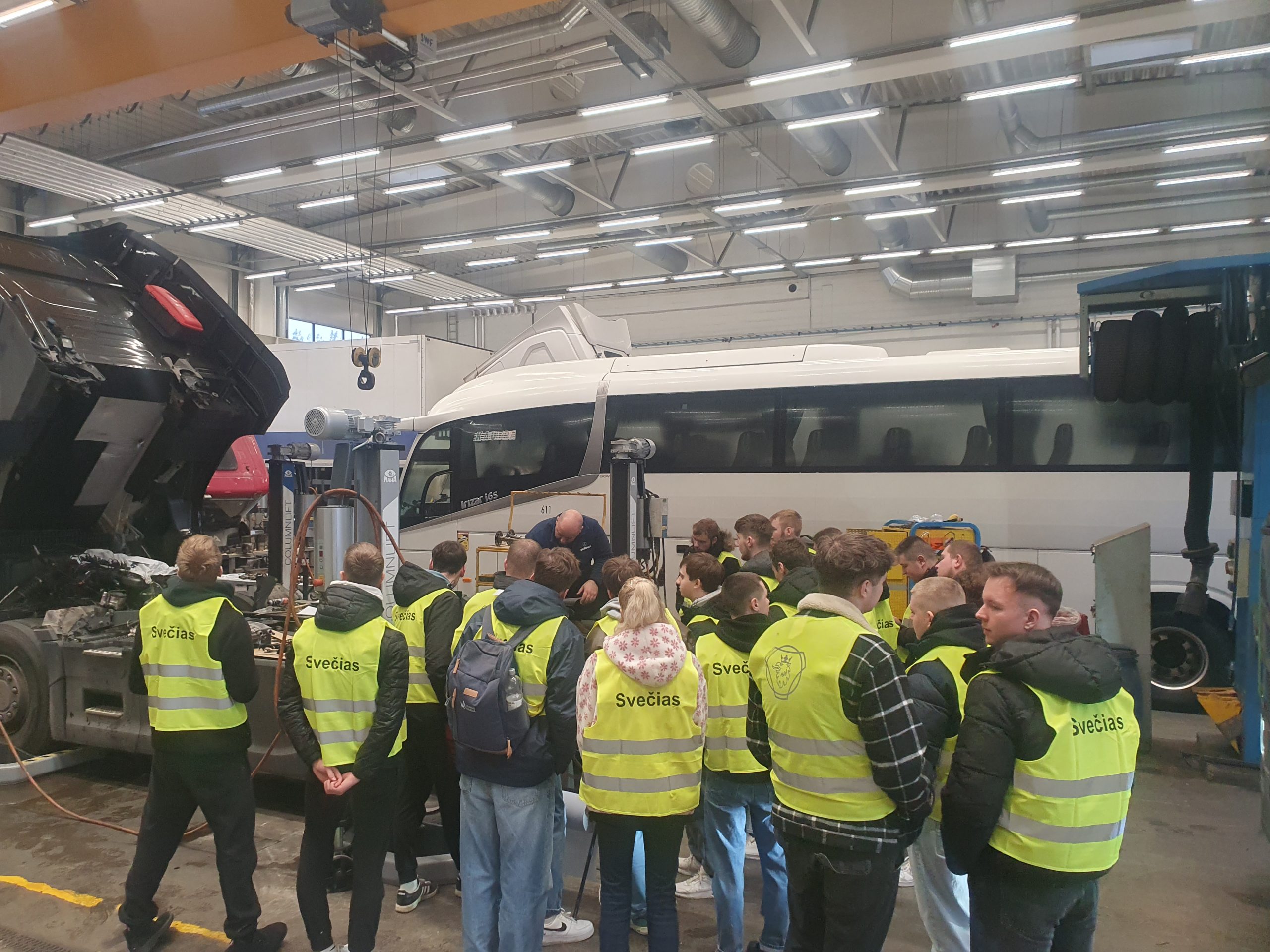 2025 m. lapkričio 19 d. antrakursiai Automobilių techninio eksploatavimo studijų programos studentai lankėsi UAB „Scania Lietuva“ sunkvežimių servise.