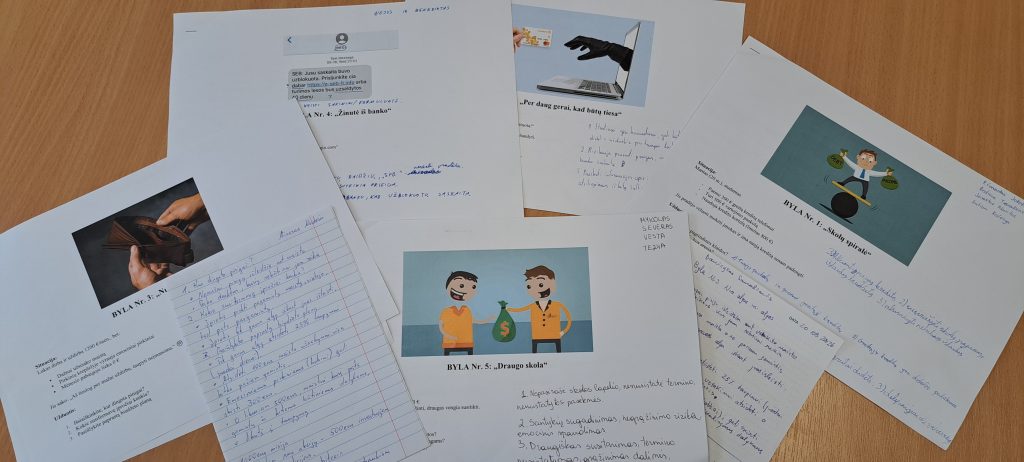 TI24 ir TE24A studentai vienai paskaitai tapo pinigų detektyvais ir sprendė bylas: “Skolų spiralė” – apie greitųjų paskolų pavojus; “Nuo algos iki algos” – apie biudžeto planavimą, “Per daug gerai, kad būtų tiesa” – apie atsakingą investavimą, “Pirmas atlyginimas” – apie pinigų valdymą ir kt.